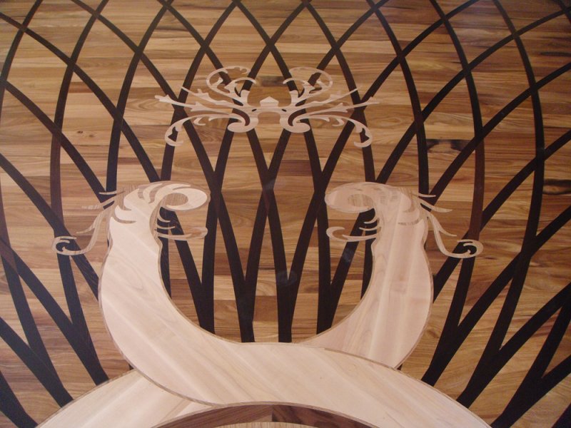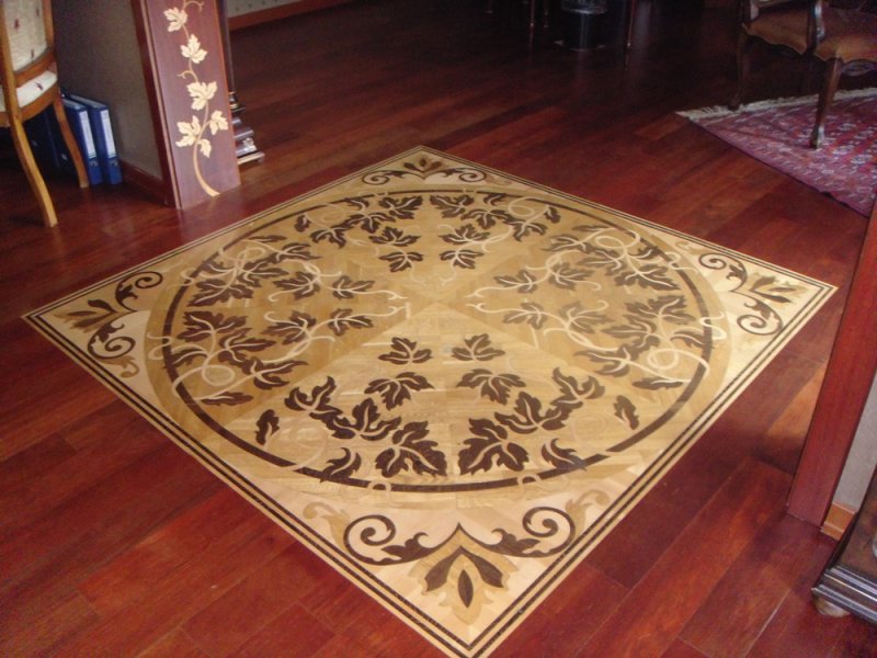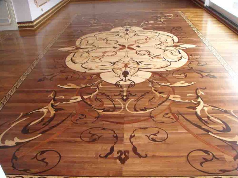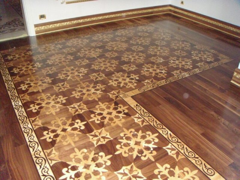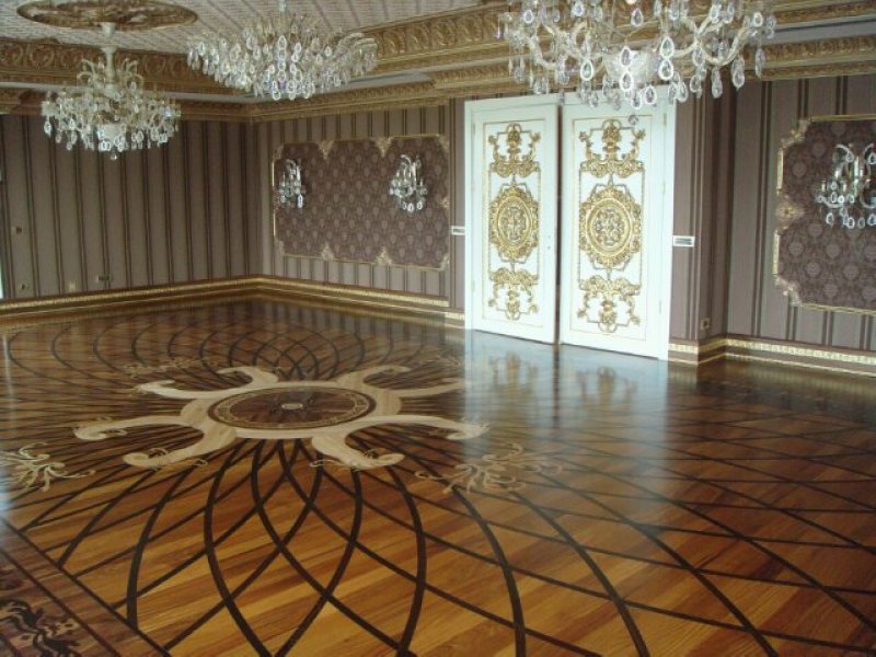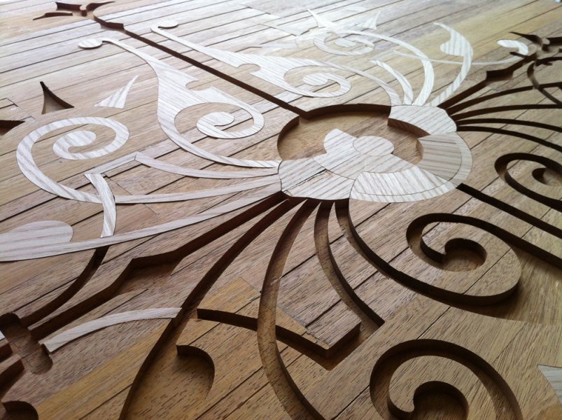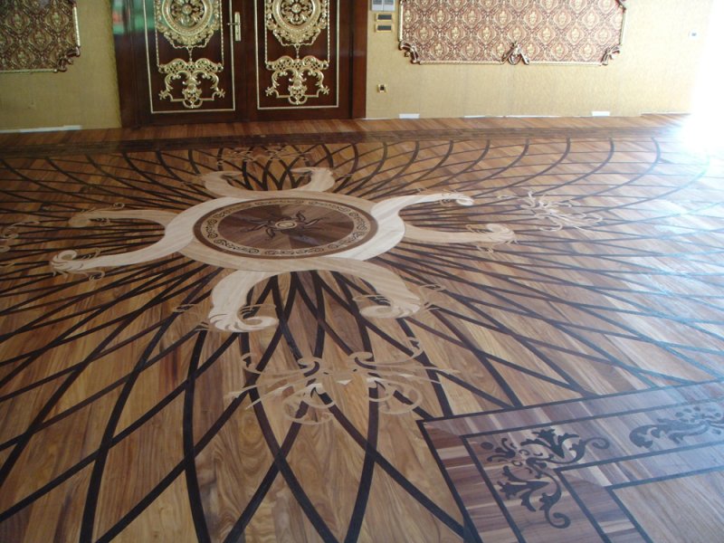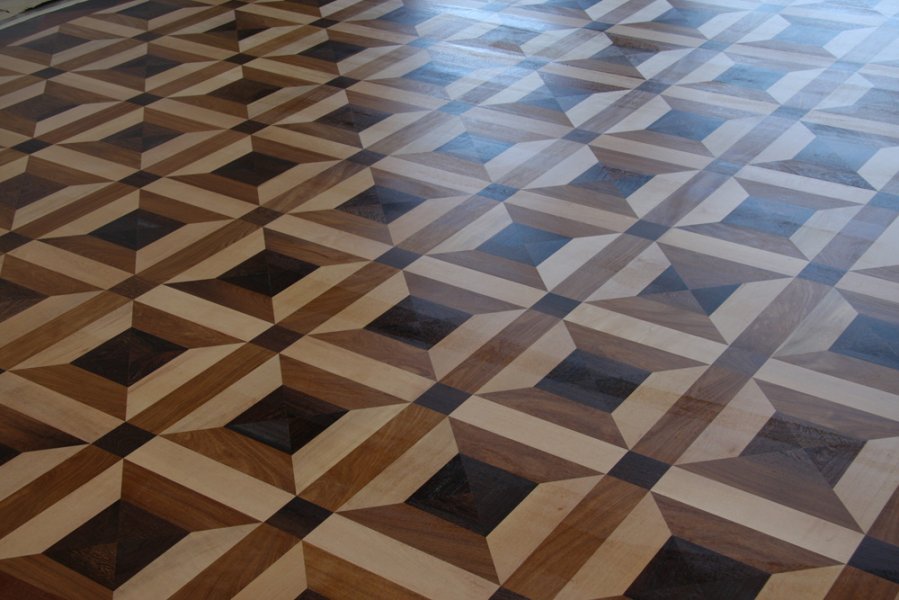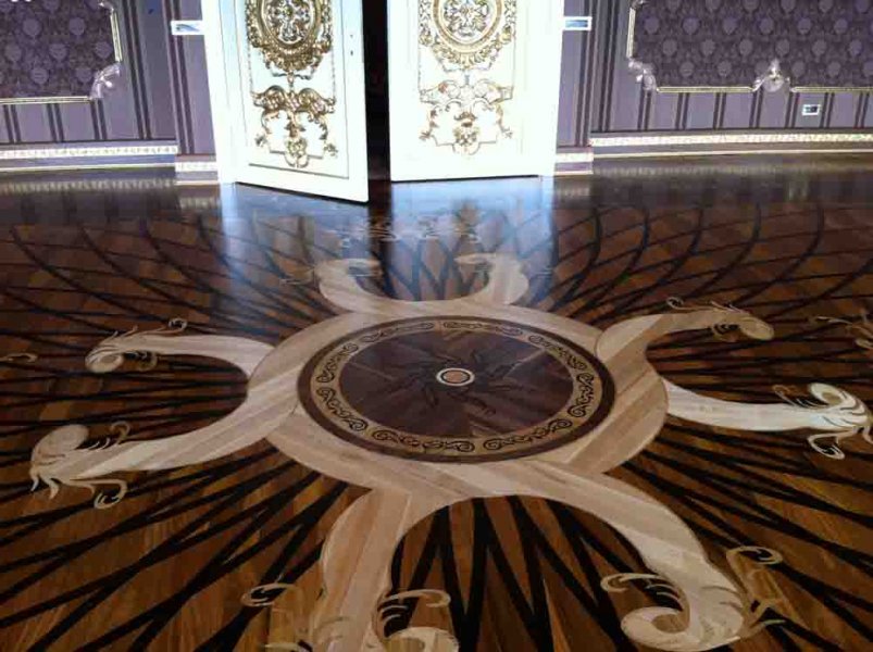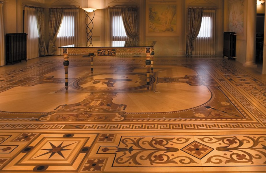 Marqueterie flooring is created with patterns fully tailored to personal requests, and each flooring has a unique shape.