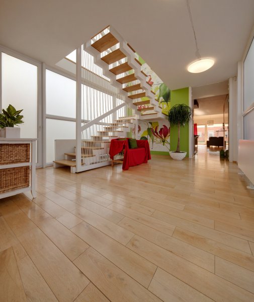 An ideal and aesthetic solution to minimize reactions due to abrasion in large areas exposed to heavy traffic, such as restaurant, office, concert and opera halls, or large sites like storage areas on which forklifts will circulate: Solid Industrial Floorings from Novawood.